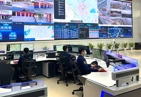 新建成的城市副中心總建筑面積530平方米,將空間劃分為指揮大廳、作戰(zhàn)制圖室、會(huì)商研判室、指揮長(zhǎng)室、辦公室的“一廳四室”。設(shè)置接警調(diào)度、情報(bào)信息、指揮決策、融合值守、舒緩休閑5大功能區(qū)域、21個(gè)值守席位,形成“專區(qū)專用、分區(qū)互通、全區(qū)并融”的立體化架構(gòu)。